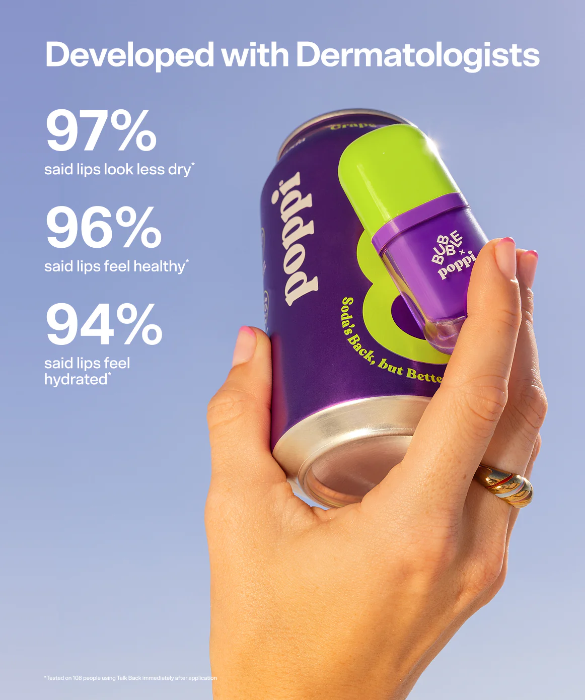 For fans of major flavor. The Pop Stars Lip Serum Duo from Bubble x poppi features lip serums in two iconic, soda-inspired flavors: Strawberry Lemon and Grape. The nourishing formula leaves dry lips feeling soft and smooth, while the glossy finish gives your pout a pop of glam.